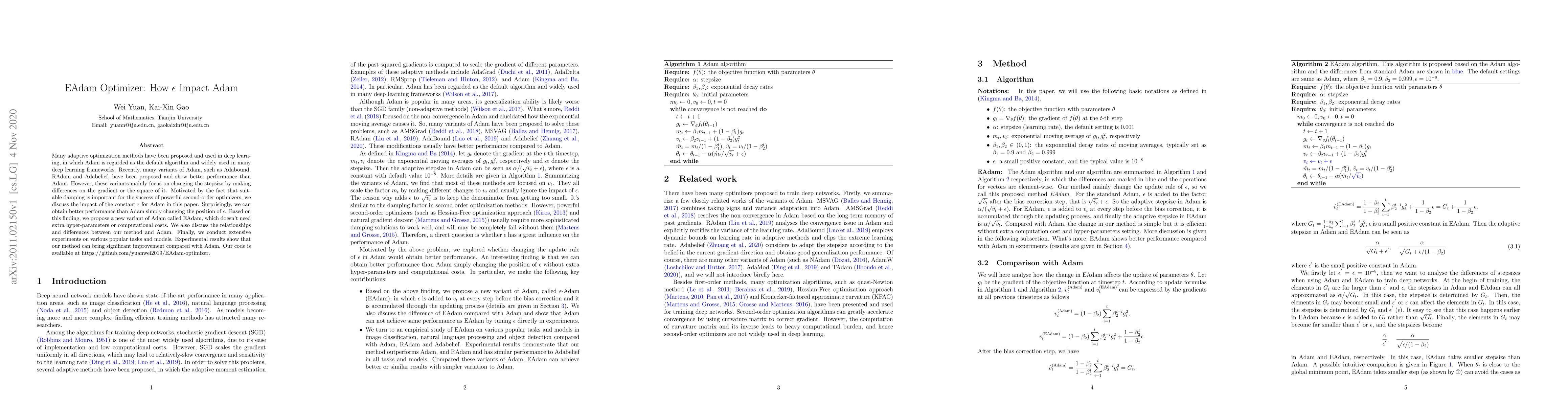 This paper investigates the impact of the damping constant $\epsilon$ in the Adam optimizer, proposing a new variant called EAdam that achieves better performance by adjusting $\epsilon$ without additional hyperparameters or computational costs. Experimental results demonstrate significant improvements over the standard Adam optimizer across various tasks.