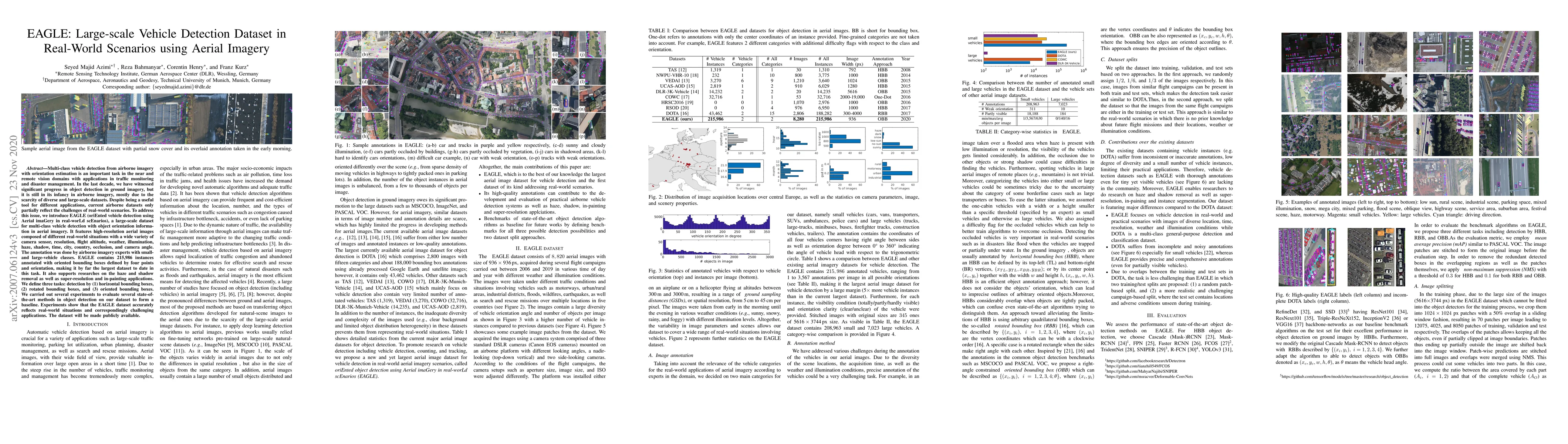 EAGLE is a large-scale dataset for multi-class vehicle detection in aerial imagery, featuring high-resolution images with diverse real-world conditions and annotations for oriented bounding boxes. The dataset supports various detection tasks and aims to address the scarcity of comprehensive airborne datasets for research.