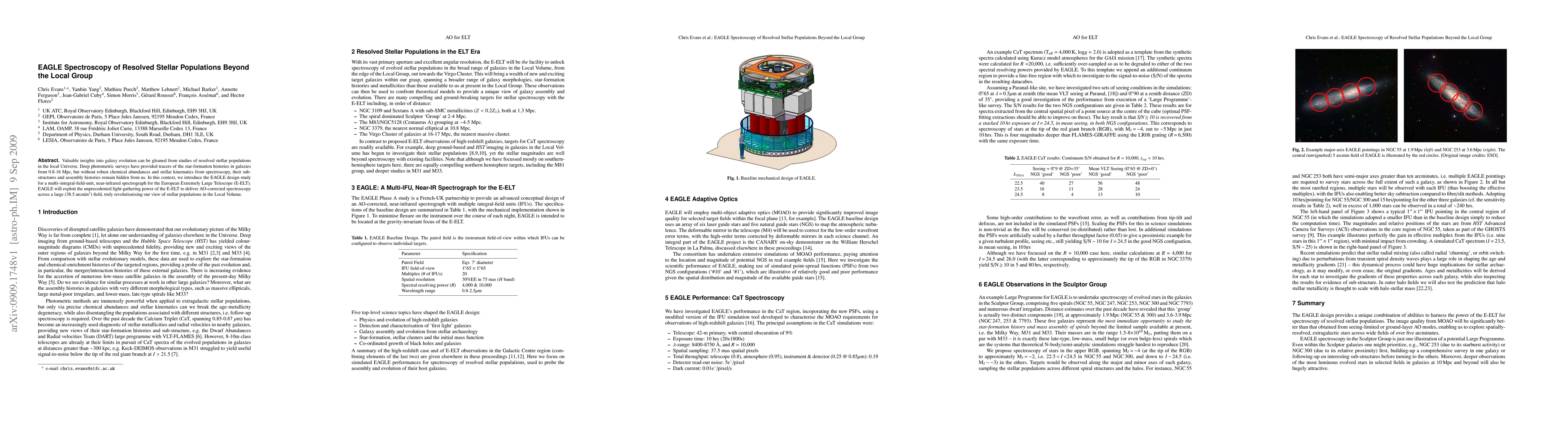 Valuable insights into galaxy evolution can be gleaned from studies of resolved stellar populations in the local Universe. Deep photometric surveys have provided tracers of the star-formation histories in galaxies from 0.8-16 Mpc, but without robust chemical abundances and stellar kinematics from spectroscopy, their sub-structures and assembly histories remain hidden from us. In this context, we introduce the EAGLE design study for a multi--integral-field-unit, near-infrared spectrograph for the European Extremely Large Telescope (E-ELT). EAGLE will exploit the unprecedented light-gathering power of the E-ELT to deliver AO-corrected spectroscopy across a large (38.5 sq. arcmin) field, truly revolutionising our view of stellar populations in the Local Volume.