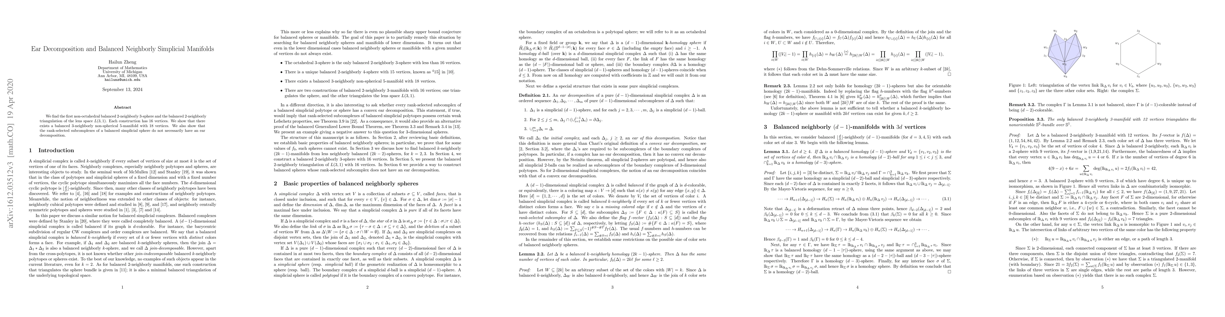 Summary: This paper constructs the first non-octahedral balanced 2-neighborly 3-sphere and a balanced 2-neighborly triangulation of the lens space $L(3,1)$, both with 16 vertices, and reveals a balanced 3-neighborly non-spherical 5-manifold with 18 vertices, while noting that rank-selected subcomplexes of balanced simplicial spheres may lack ear decompositions.