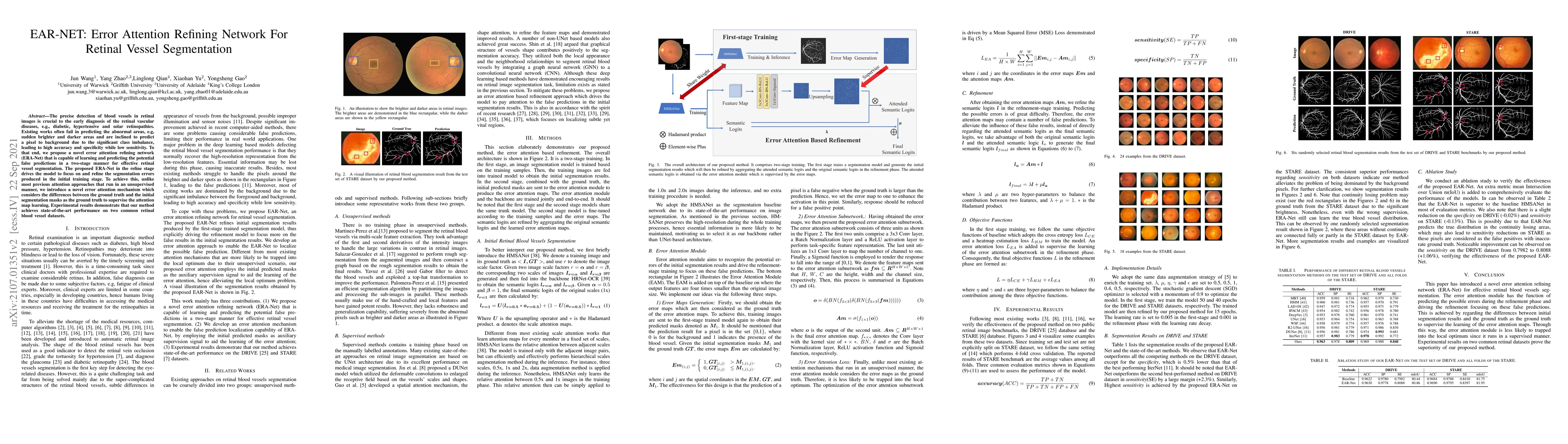 The paper proposes ERA-Net, a novel error attention refining network for precise retinal vessel segmentation, addressing the issue of class imbalance by refining initial segmentation errors in a two-stage process, achieving superior results on standard datasets.