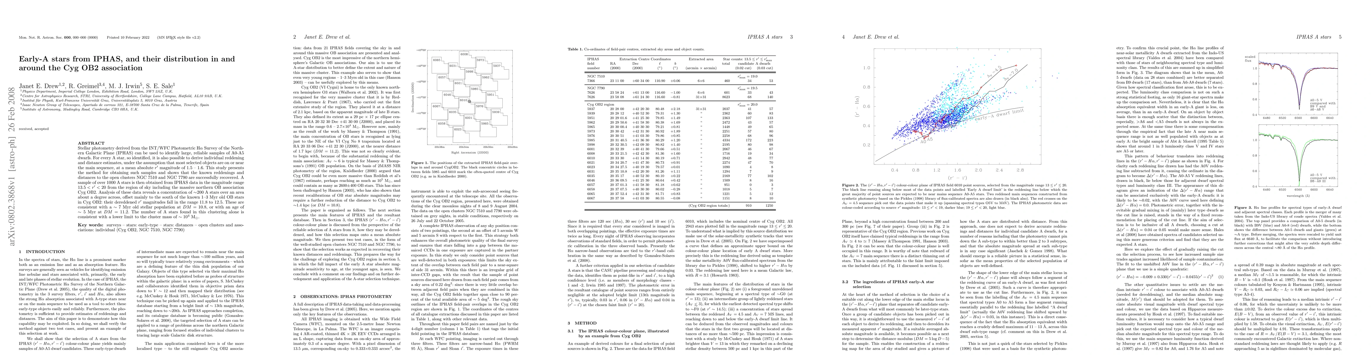 This study uses IPHAS data to identify and analyze early-A stars, revealing a concentration of ~200 A stars near Cyg OB2, suggesting a ~7 Myr old stellar population and a lower limit cluster mass of ~10000 M-sun. The clustering is offset to the south of the younger OB stars in Cyg OB2.
