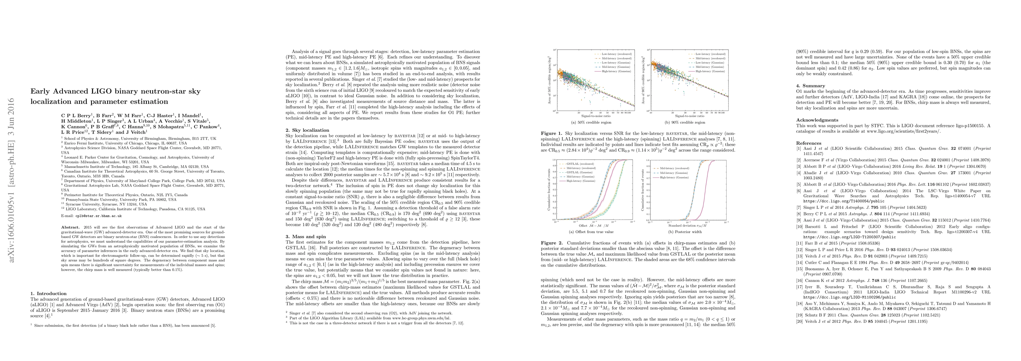 This paper evaluates the early capabilities of Advanced LIGO in detecting and analyzing gravitational waves from binary neutron-star coalescences. It finds that while sky localization can be achieved quickly, it remains broad, and individual mass and spin measurements are uncertain due to degeneracies, though the chirp mass is accurately determined.