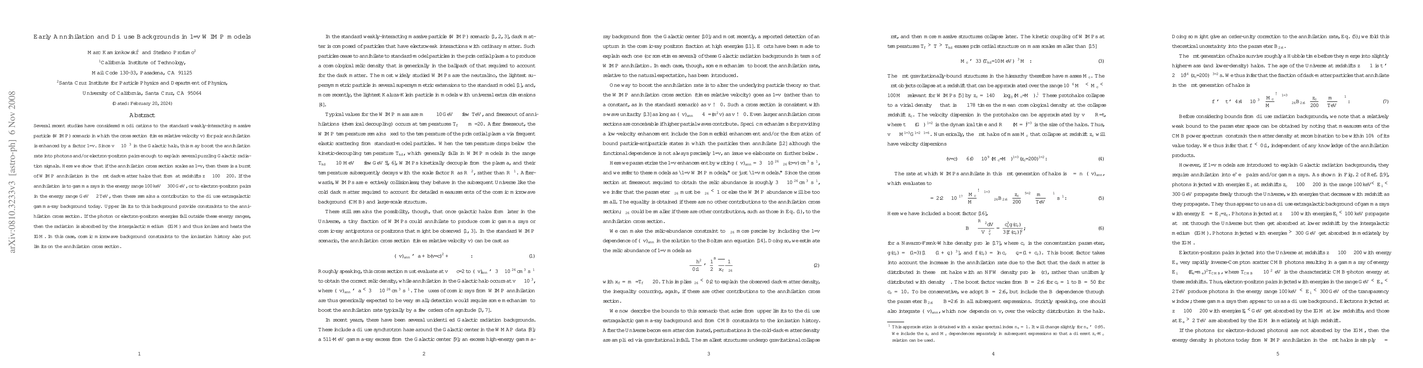 Several recent studies have considered modifications to the standard weakly-interacting massive particle (WIMP) scenario in which the cross section (times relative velocity v) for pair annihilation is enhanced by a factor 1/v. Since v~10^{-3} in the Galactic halo, this may boost the annihilation rate into photons and/or electron-positron pairs enough to explain several puzzling Galactic radiation signals. Here we show that if the annihilation cross section scales as 1/v, then there is a burst of WIMP annihilation in the first dark-matter halos that form at redshifts z ~ 100-200. If the annihilation is to gamma rays in the energy range 100 keV - 300 GeV, or to electron-positron pairs in the energy range GeV - 2 TeV, then there remains a contribution to the diffuse extragalactic gamma-ray background today. Upper limits to this background provide constraints to the annihilation cross section. If the photon or electron-positron energies fall outside these energy ranges, then the radiation is absorbed by the intergalactic medium (IGM) and thus ionizes and heats the IGM. In this case, cosmic microwave background constraints to the ionization history also put limits on the annihilation cross section.