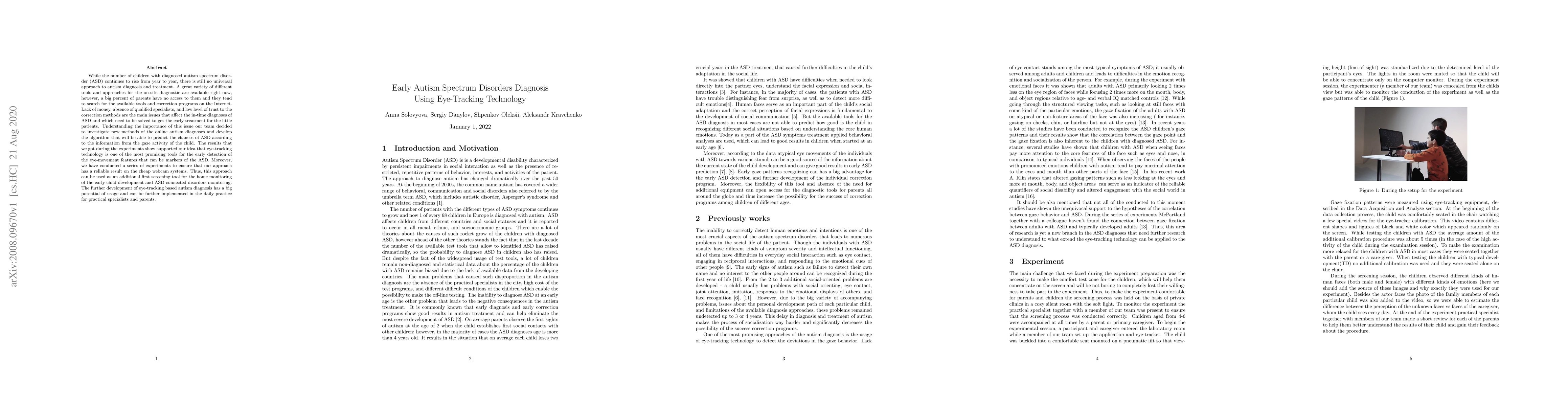 The paper presents a novel approach to early ASD diagnosis using eye-tracking technology, demonstrating its potential as a first-screening tool for home monitoring of early child development and ASD-related disorders.