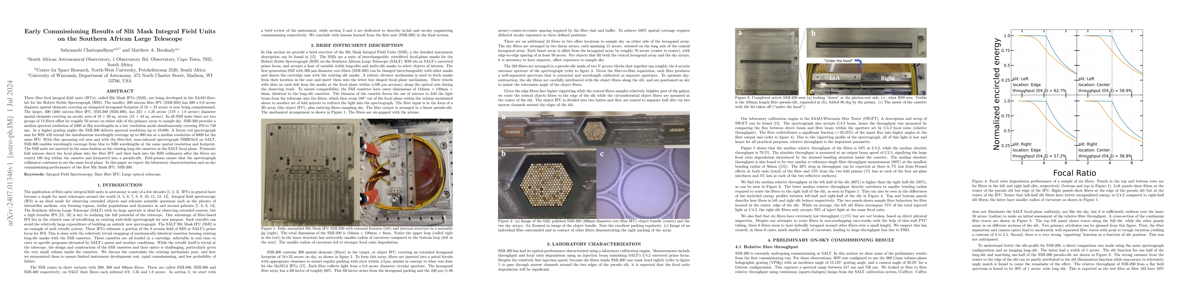 This paper presents the early commissioning results of the first Slit Mask Integral Field Unit (SMI-200) on the Southern African Large Telescope. The SMI-200, with 309 spatial elements and a median spectral resolution of up to 10,000, provides wavelength coverage from 370 to 740 nm, with future plans for a red spectrograph arm to extend this to 900 nm.