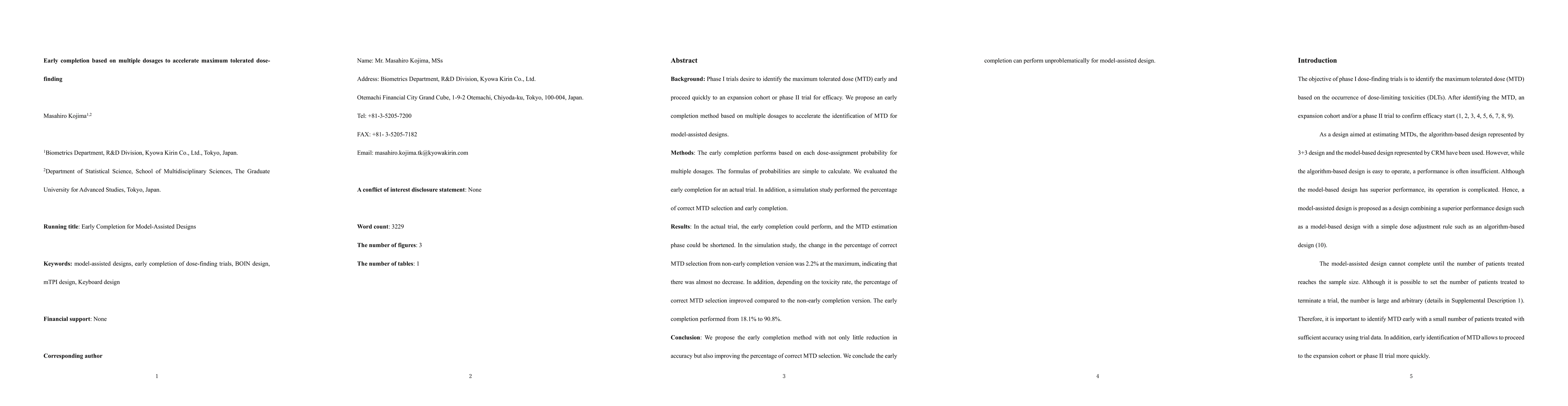 This paper proposes an early completion method for accelerating the identification of the maximum tolerated dose (MTD) in Phase I trials, based on multiple dosages. The method maintains high accuracy with minimal reduction in MTD selection and can shorten the MTD estimation phase effectively.