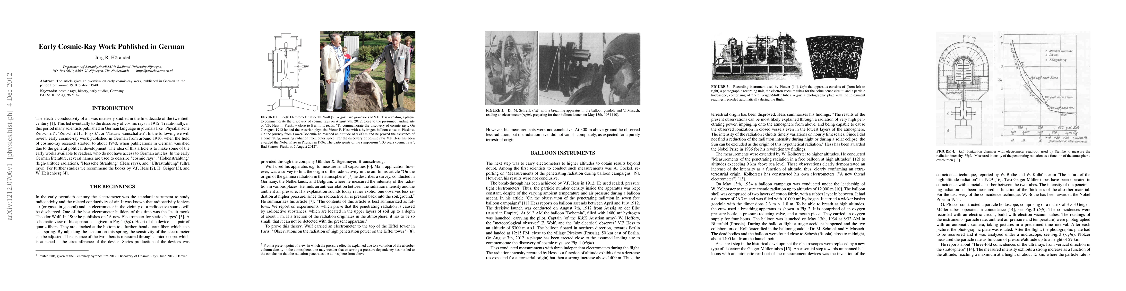 The article gives an overview on early cosmic-ray work, published in German in the period from around 1910 to about 1940.