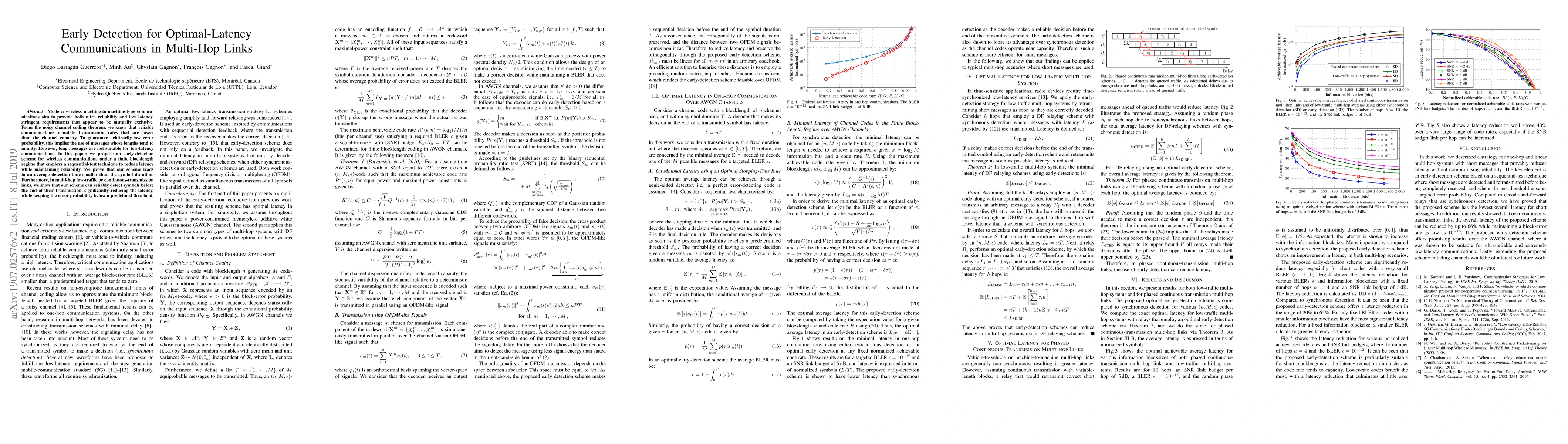 The paper presents a novel early-detection scheme based on sequential testing for finite-blocklength wireless communications, which significantly reduces latency in both one-hop and multi-hop systems.