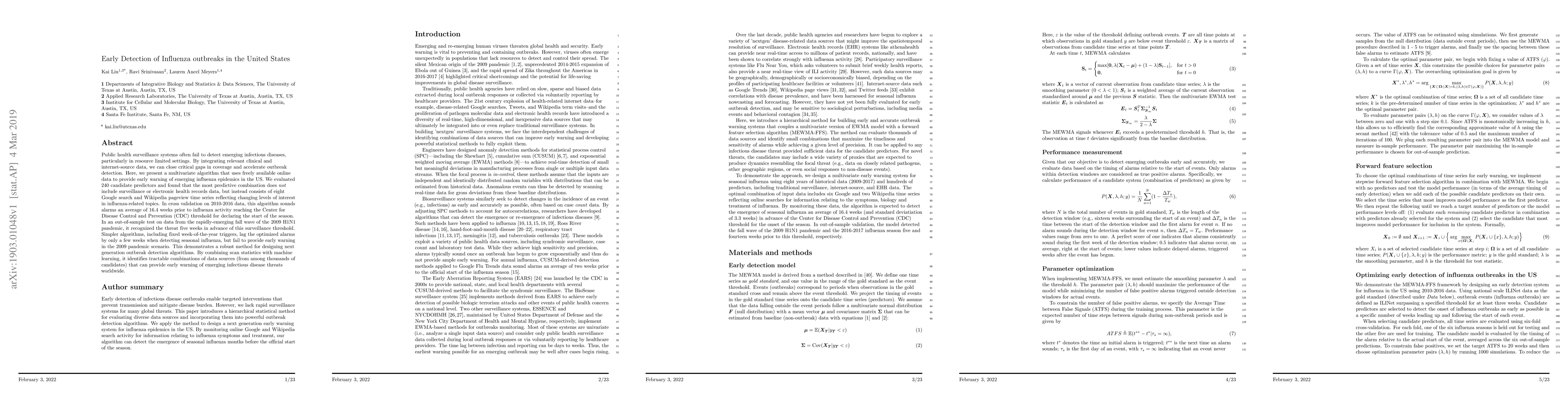 Public health surveillance systems often fail to detect emerging infectious diseases, particularly in resource limited settings. By integrating relevant clinical and internet-source data, we can close critical gaps in coverage and accelerate outbreak detection. Here, we present a multivariate algorithm that uses freely available online data to provide early warning of emerging influenza epidemics in the US. We evaluated 240 candidate predictors and found that the most predictive combination does \textit{not} include surveillance or electronic health records data, but instead consists of eight Google search and Wikipedia pageview time series reflecting changing levels of interest in influenza-related topics. In cross validation on 2010-2016 data, this algorithm sounds alarms an average of 16.4 weeks prior to influenza activity reaching the Center for Disease Control and Prevention (CDC) threshold for declaring the start of the season. In an out-of-sample test on data from the rapidly-emerging fall wave of the 2009 H1N1 pandemic, it recognized the threat five weeks in advance of this surveillance threshold. Simpler algorithms, including fixed week-of-the-year triggers, lag the optimized alarms by only a few weeks when detecting seasonal influenza, but fail to provide early warning in the 2009 pandemic scenario. This demonstrates a robust method for designing next generation outbreak detection algorithms. By combining scan statistics with machine learning, it identifies tractable combinations of data sources (from among thousands of candidates) that can provide early warning of emerging infectious disease threats worldwide.