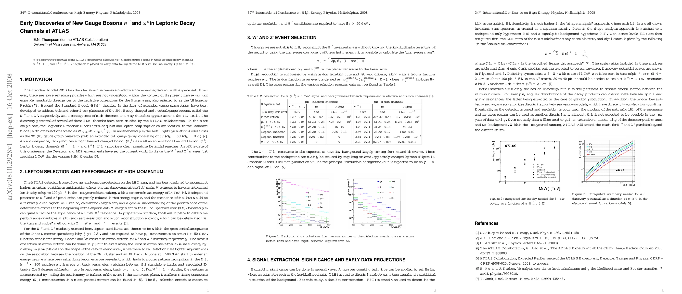 Summary: This paper explores the ATLAS detector's capability to identify new massive gauge bosons W' and Z' through their leptonic decay channels, focusing on early LHC data with low luminosity up to 1 fb^-1. The study highlights potential early discoveries in these decay processes.