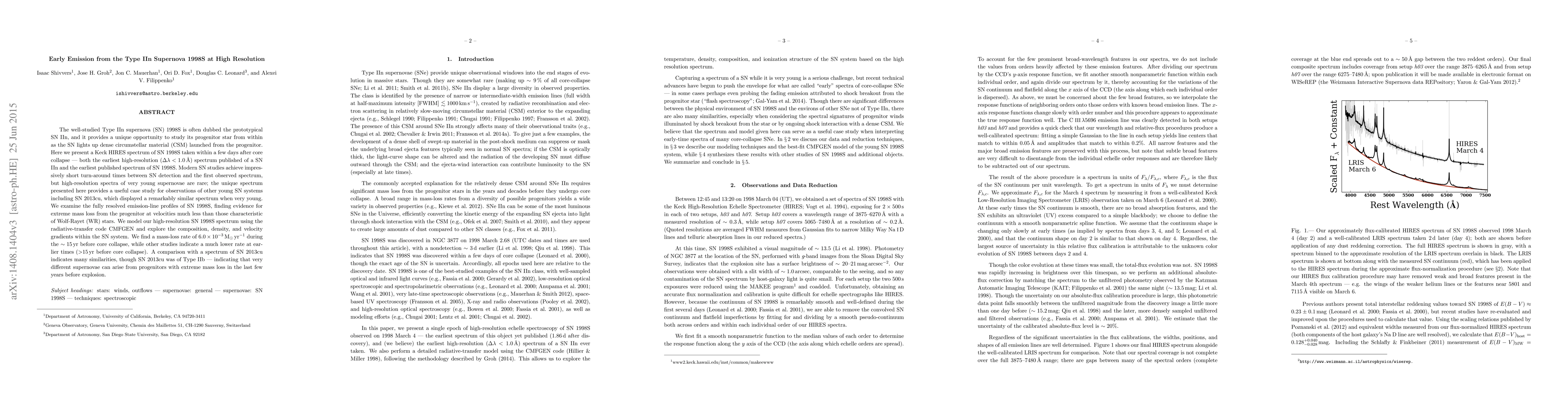 The well-studied Type IIn supernova (SN) 1998S is often dubbed the prototypical SN IIn, and it provides a unique opportunity to study its progenitor star from within as the SN lights up dense circumstellar material (CSM) launched from the progenitor. Here we present a Keck HIRES spectrum of SN 1998S taken within a few days after core collapse - both the earliest high-resolution ($\Delta\lambda < 1.0\,\AA$) spectrum published of a SN IIn and the earliest published spectrum of SN 1998S. Modern SN studies achieve impressively short turn-around times between SN detection and the first observed spectrum, but high-resolution spectra of very young supernovae are rare; the unique spectrum presented here provides a useful case study for observations of other young SN systems including SN 2013cu, which displayed a remarkably similar spectrum when very young. We examine the fully resolved emission-line profiles of SN 1998S, finding evidence for extreme mass loss from the progenitor at velocities much less than those characteristic of Wolf-Rayet (WR) stars. We model our high-resolution SN 1998S spectrum using the radiative-transfer code CMFGEN and explore the composition, density, and velocity gradients within the SN system. We find a mass-loss rate of $6.0 \times 10^{-3} M_{\odot}$ per year during the $\sim$15 yr before core collapse, while other studies indicate a much lower rate at earlier times (>15yr before core collapse). A comparison with a spectrum of SN 2013cu indicates many similarities, though SN 2013cu was of Type IIb - indicating that very different supernovae can arise from progenitors with extreme mass loss in the last few years before explosion.
