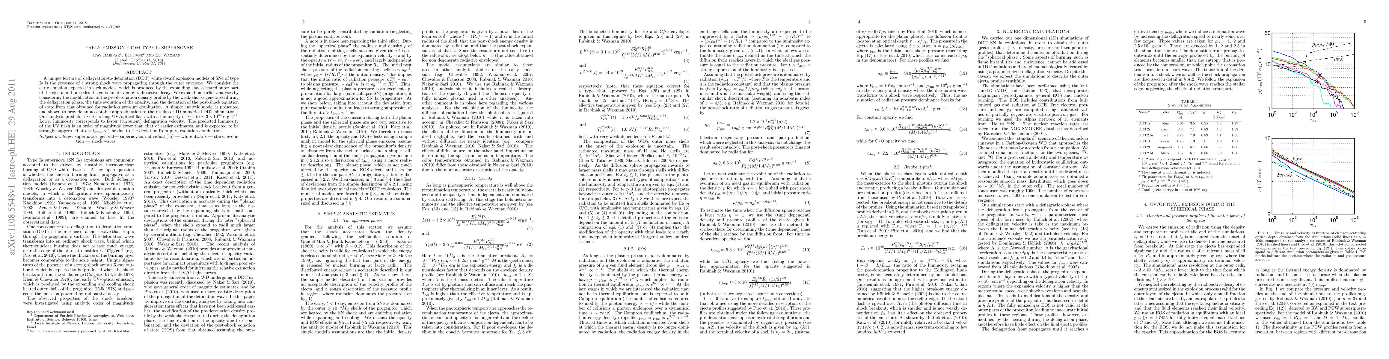 A unique feature of deflagration-to-detonation (DDT) white dwarf explosion models of SNe of type Ia is the presence of a strong shock wave propagating through the outer envelope. We consider the early emission expected in such models, which is produced by the expanding shock-heated outer part of the ejecta and precedes the emission driven by radioactive decay. We expand on earlier analyses by considering the modification of the pre-detonation density profile by the weak-shocks generated during the deflagration phase, the time evolution of the opacity, and the deviation of the post-shock equation of state from that obtained for radiation pressure domination. A simple analytic model is presented and shown to provide an acceptable approximation to the results of 1D numerical DDT simulations. Our analysis predicts a thousand second long UV/optical flash with a luminosity of ~1 to 3*1e39 erg/s. Lower luminosity corresponds to faster (turbulent) deflagration velocity. The predicted luminosity of the UV flash is an order of magnitude lower than that of earlier estimates, and is expected to be strongly suppressed at times longer than an hour due to the deviation from pure radiation domination.