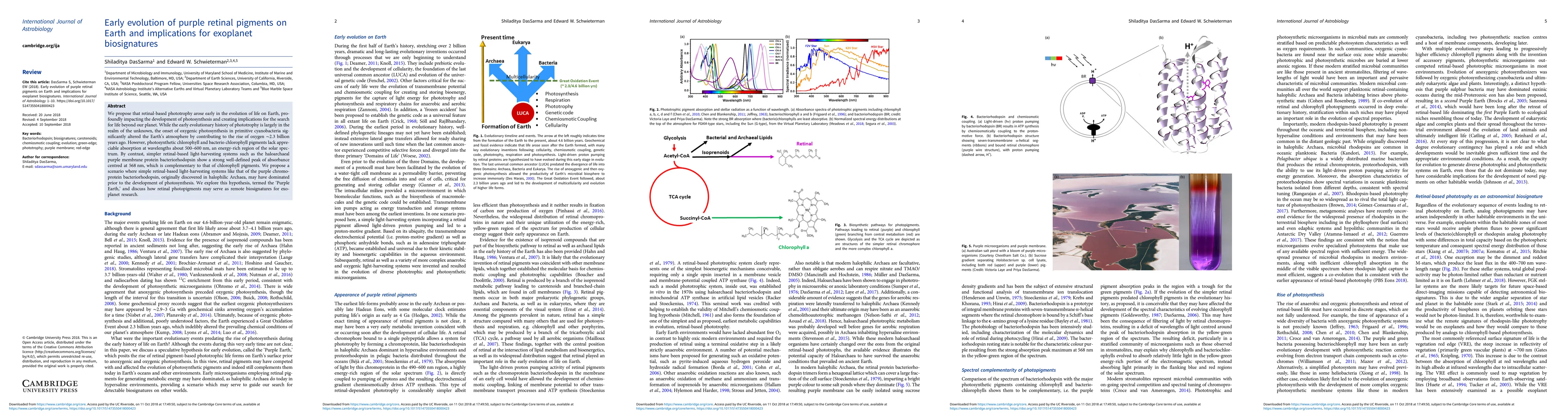 This paper hypothesizes that retinal-based phototrophy preceded chlorophyll-based photosynthesis on early Earth, suggesting that simple retinal systems like bacteriorhodopsin may have been the first light-harvesting mechanisms. It proposes that these systems could serve as biosignatures for detecting life on exoplanets.