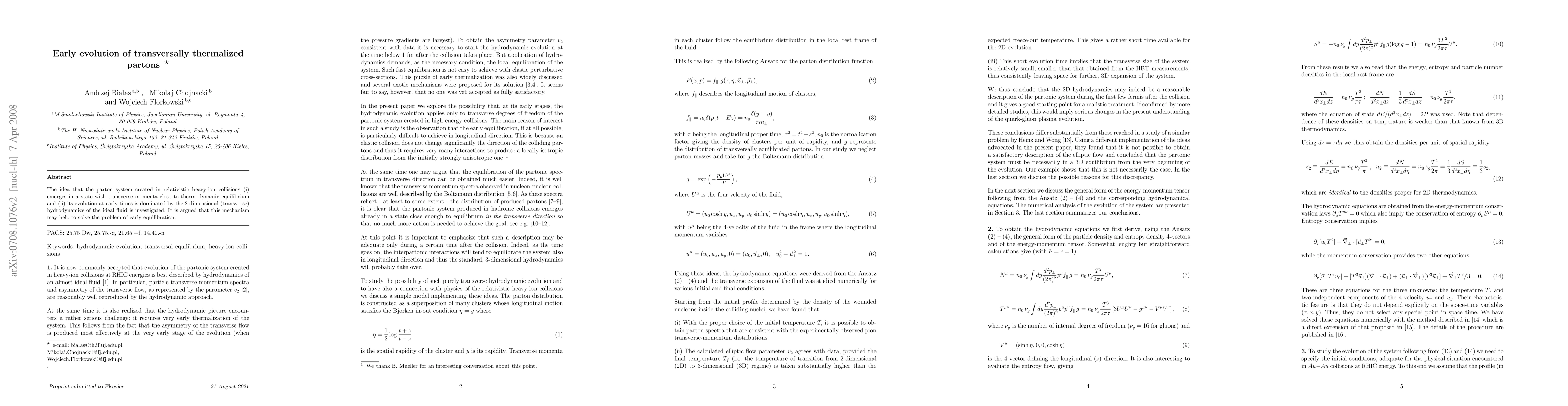 The idea that the parton system created in relativistic heavy-ion collisions (i) emerges in a state with transverse momenta close to thermodynamic equilibrium and (ii) its evolution at early times is dominated by the 2-dimensional (transverse) hydrodynamics of the ideal fluid is investigated. It is argued that this mechanism may help to solve the problem of early equilibration.