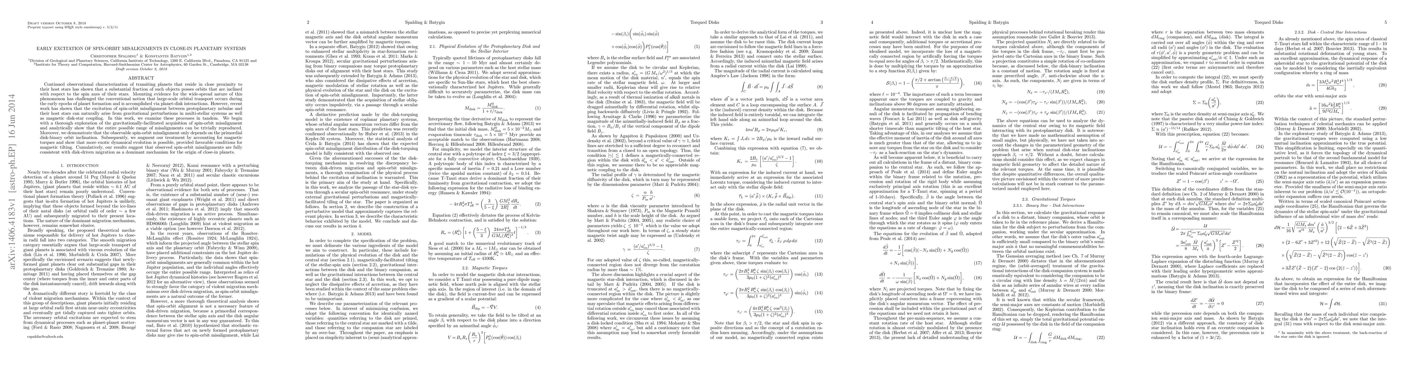 This paper explores the early excitation of spin-orbit misalignments in close-in planetary systems, demonstrating that gravitational perturbations from multi-stellar systems and magnetic disk-star coupling can naturally produce such misalignments. The study concludes that observed misalignments align well with disk-driven migration as the primary mechanism.