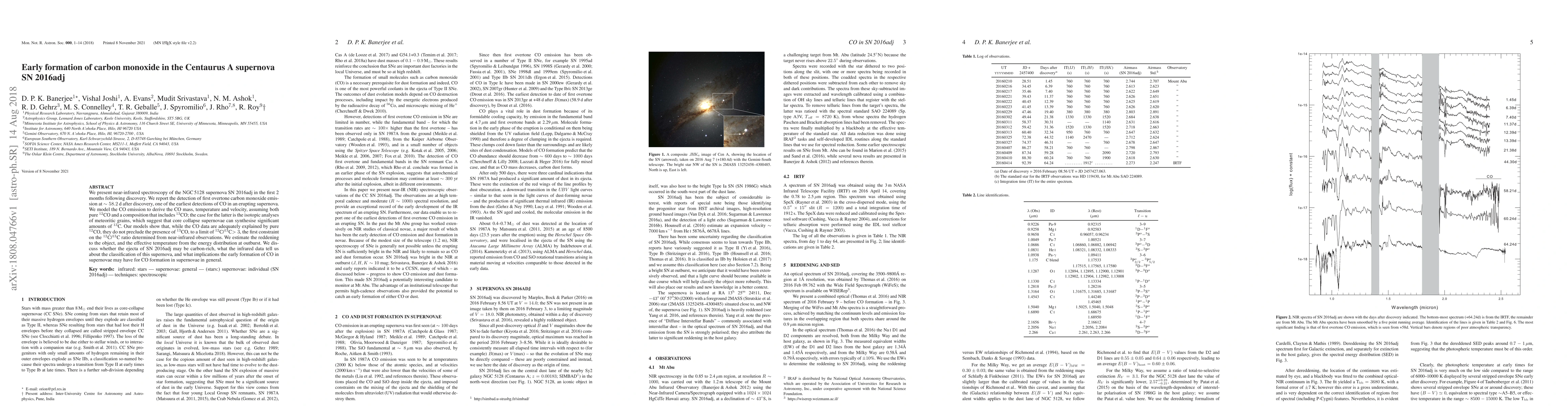 Near-infrared spectroscopy of SN 2016adj in the Centaurus A galaxy was conducted in the first 2 months post-discovery to study the early formation of carbon monoxide (CO).
