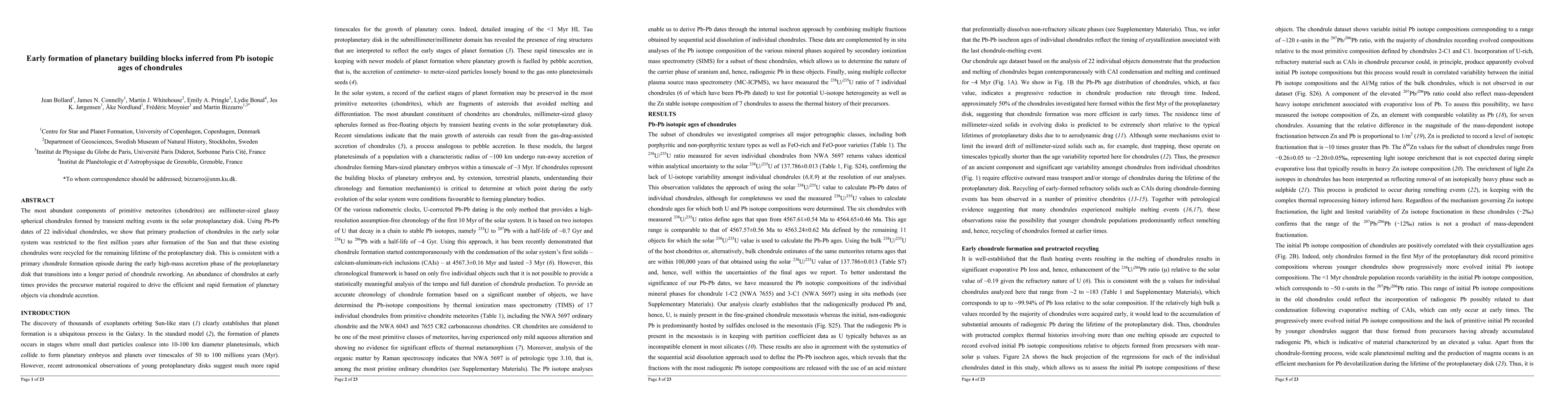 This study uses Pb isotopic ages of chondrules to infer that primary chondrule formation occurred within the first million years after the Sun's formation, followed by recycling of these chondrules for the disk's remaining lifespan, supporting rapid planetary formation via chondrule accretion.