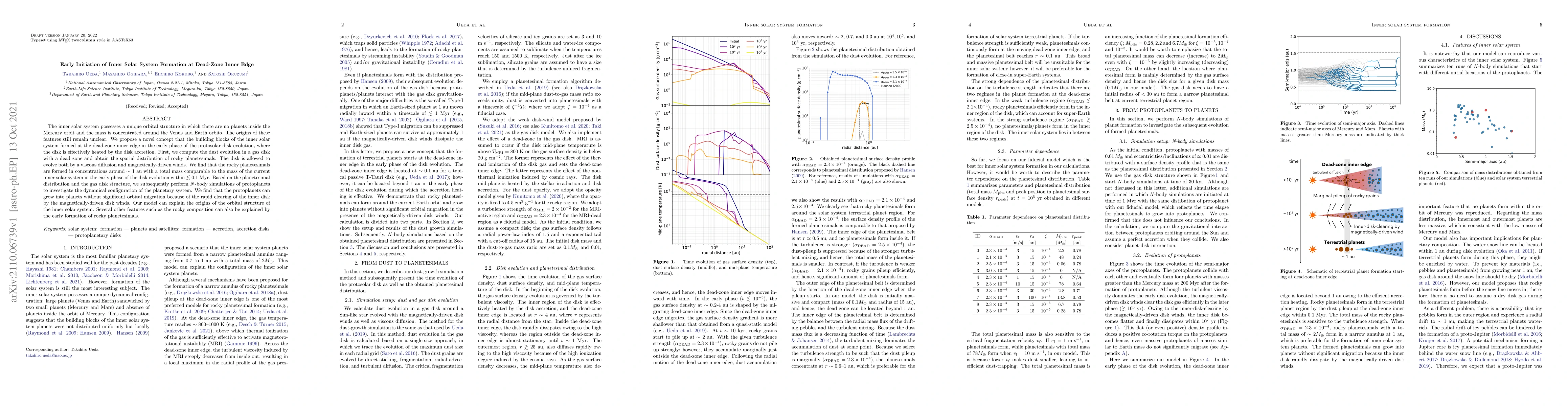 This paper proposes that the inner solar system's unique structure formed at the dead-zone inner edge of the early protosolar disk, where rapid heating and disk evolution led to the formation of planetesimals around 1 au. The model explains the absence of planets inside Mercury's orbit and the concentration of mass around Venus and Earth.