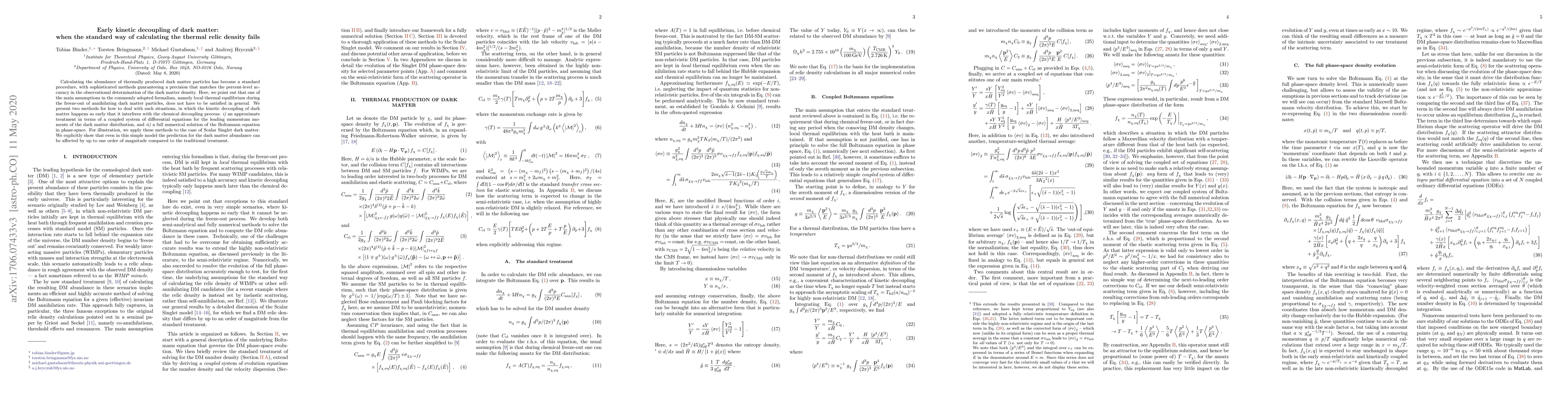 Calculating the abundance of thermally produced dark matter particles has become a standard procedure, with sophisticated methods guaranteeing a precision that matches the percent-level accuracy in the observational determination of the dark matter density. Here, we point out that one of the main assumptions in the commonly adopted formalism, namely local thermal equilibrium during the freeze-out of annihilating dark matter particles, does not have to be satisfied in general. We present two methods for how to deal with such situations, in which the kinetic decoupling of dark matter happens so early that it interferes with the chemical decoupling process: i) an approximate treatment in terms of a coupled system of differential equations for the leading momentum moments of the dark matter distribution, and ii) a full numerical solution of the Boltzmann equation in phase-space. For illustration, we apply these methods to the case of Scalar Singlet dark matter. We explicitly show that even in this simple model the prediction for the dark matter abundance can be affected by up to one order of magnitude compared to the traditional treatment.