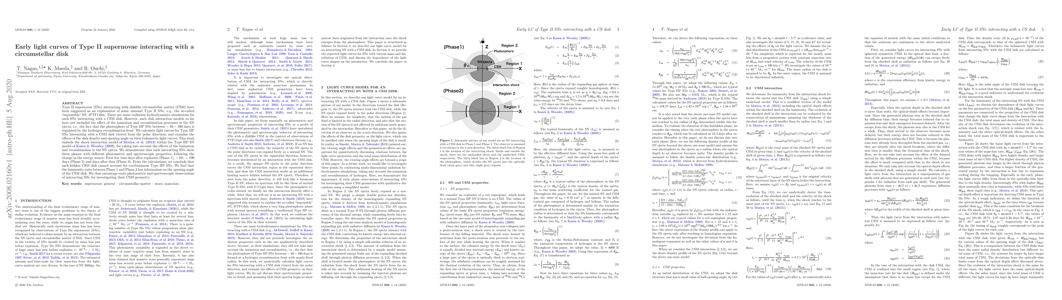 This paper investigates the light curves of Type II supernovae interacting with circumstellar disk material, focusing on the ionization and recombination processes. The study finds three distinct phases in the light curve, with the luminosity ratio between phases providing insight into the disk's opening angle, concluding that such disks cannot explain overluminous supernovae.