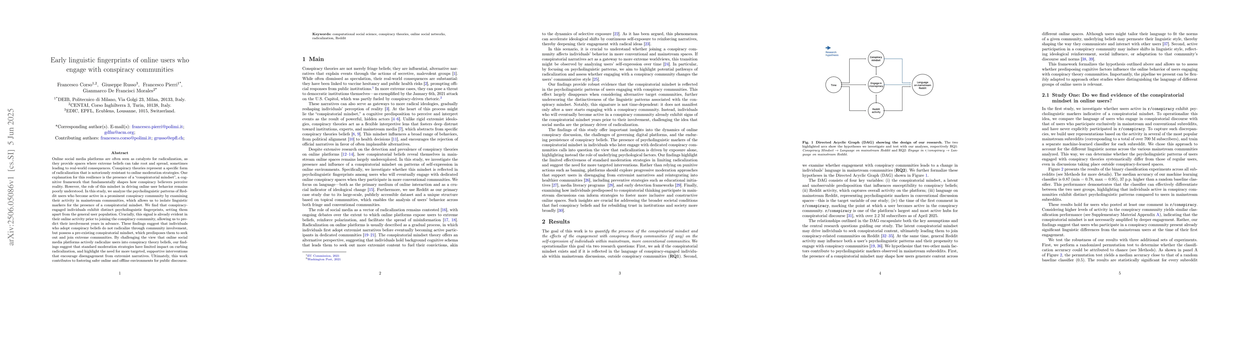 This study identifies distinct psycholinguistic fingerprints in online users who engage with conspiracy communities, suggesting a pre-existing conspiratorial mindset drives radicalization, not community involvement. The findings highlight the need for targeted interventions to curb radicalization.