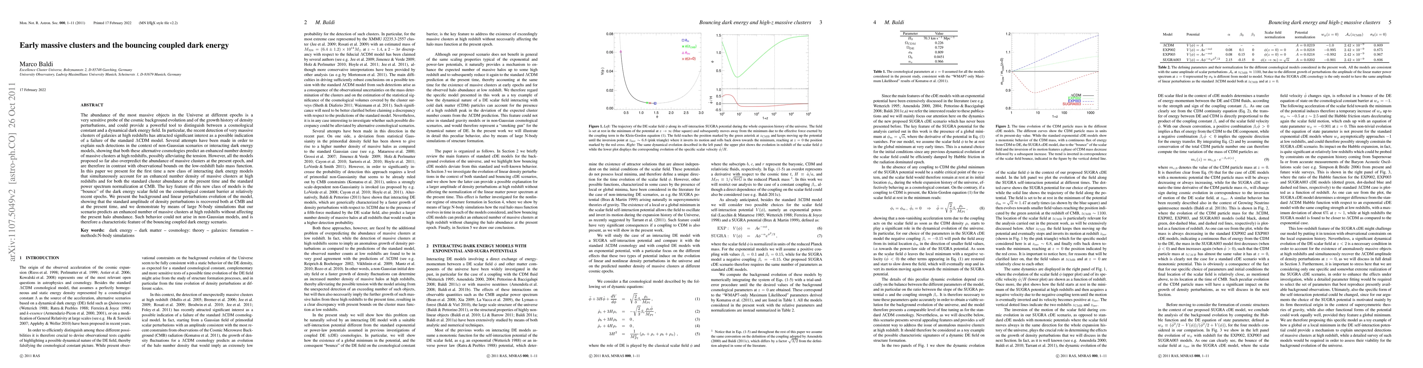 This paper introduces a new class of interacting dark energy models that can explain the abundance of massive galaxy clusters at high redshifts without overpredicting their number at present, addressing tensions with the standard LCDM model. The models feature a "bounce" of the dark energy scalar field, which reconciles the enhanced cluster formation in the past with the observed cluster abundance today.