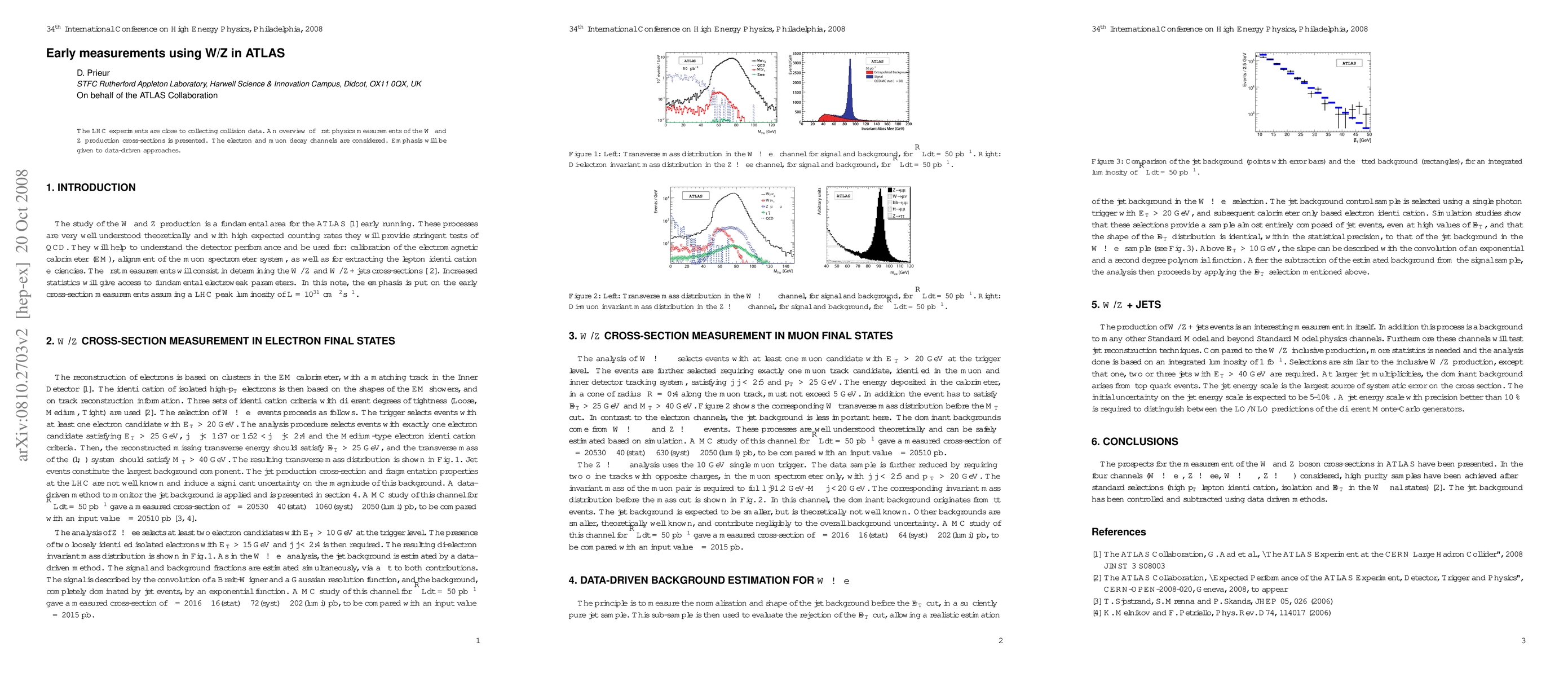 The ATLAS experiment's W and Z boson production cross-sections have been measured for the first time using early LHC collision data. Data-driven approaches were emphasized to analyze electron and muon decay channels.