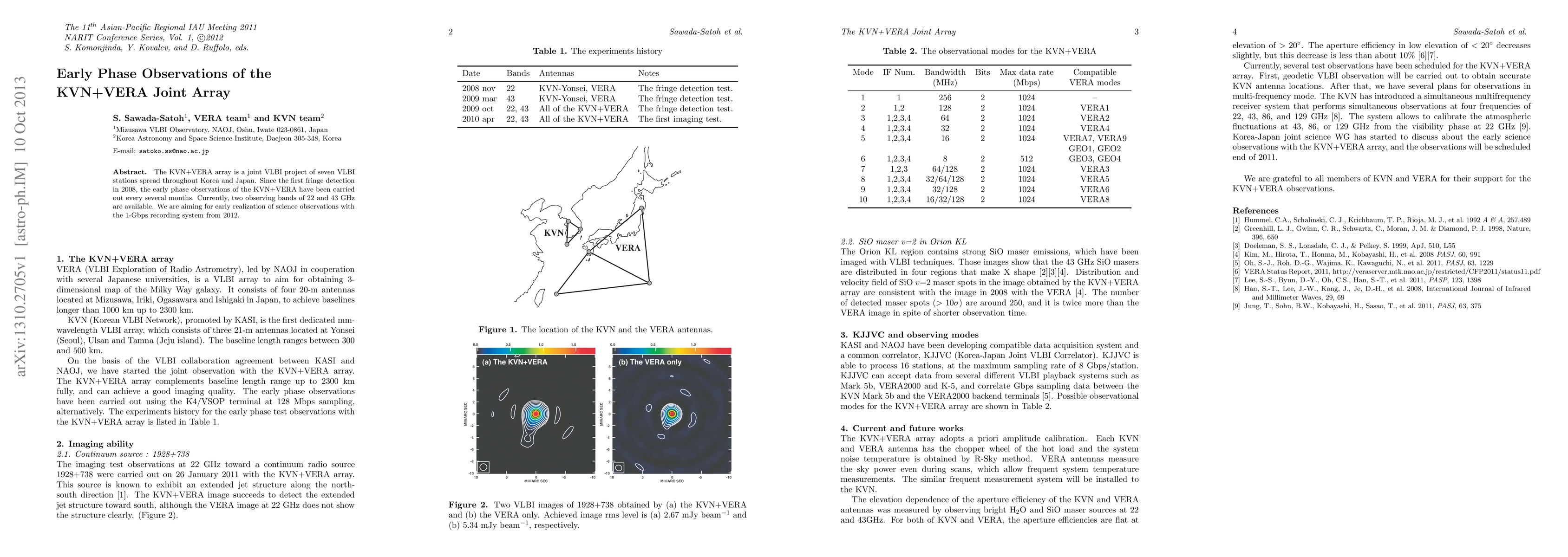 The KVN+VERA array is a joint VLBI project of seven VLBI stations spread throughout Korea and Japan. Since the first fringe detection in 2008, the early phase observations of the KVN+VERA have been carried out every several months. Currently, two observing bands of 22 and 43 GHz are available. We are aiming for early realization of science observations with the 1-Gbps recording system from 2012.