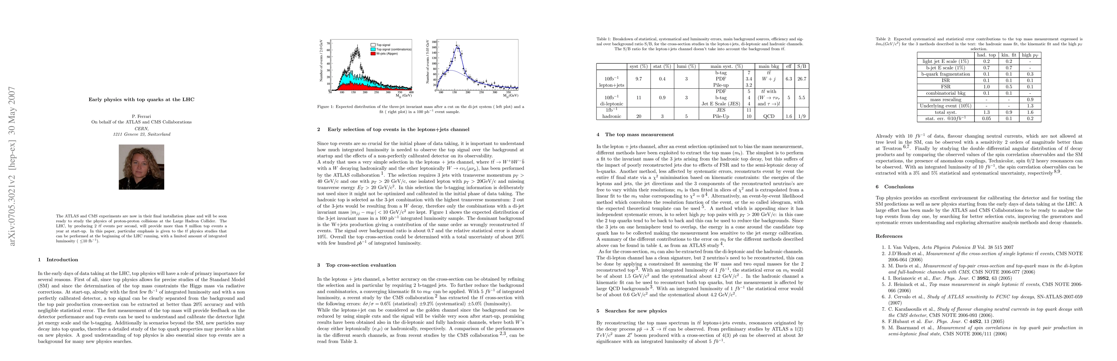 This paper discusses the initial physics studies of top quarks using the ATLAS and CMS experiments at the Large Hadron Collider (LHC), focusing on the potential for $t\bar{t}$ physics investigations with limited integrated luminosity of up to 10 fb$^{-1}$. The LHC is expected to produce over 8 million top events annually at its start-up.