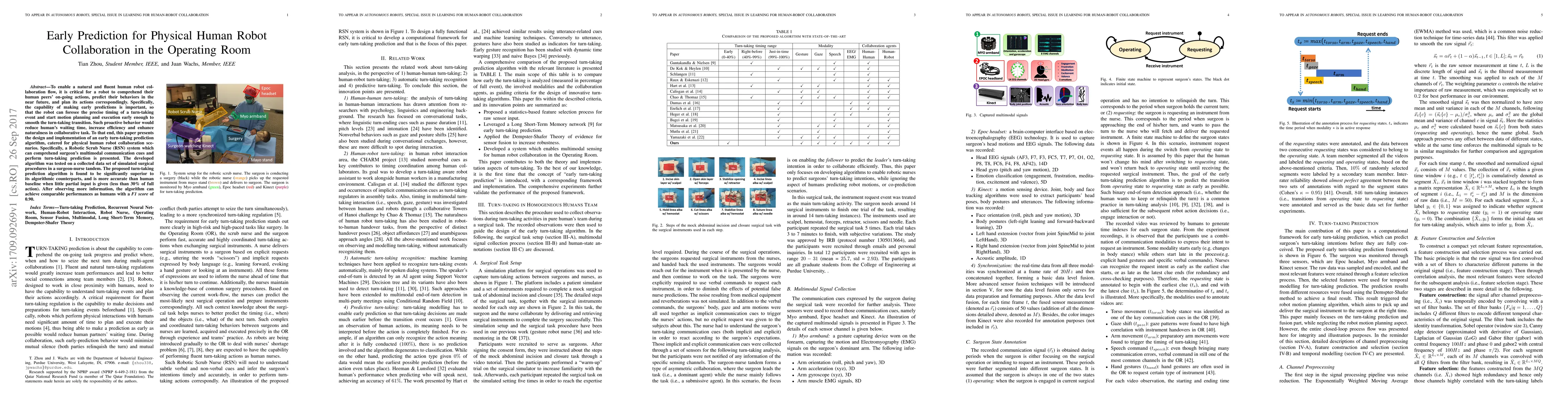 This paper introduces an early turn-taking prediction algorithm for a Robotic Scrub Nurse (RSN) system to enhance physical human-robot collaboration in surgical settings. The algorithm effectively predicts surgeon actions from multimodal cues, significantly improving efficiency and naturalness in collaborative tasks.
