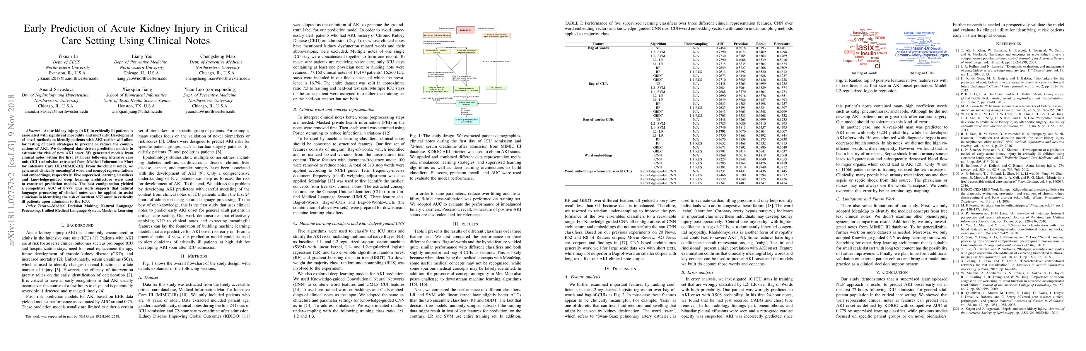 This paper develops data-driven prediction models to identify acute kidney injury (AKI) risk early in critically ill patients using clinical notes from ICU admission. The best model achieved an AUC of 0.779, indicating potential for early AKI detection through natural language processing of clinical notes.