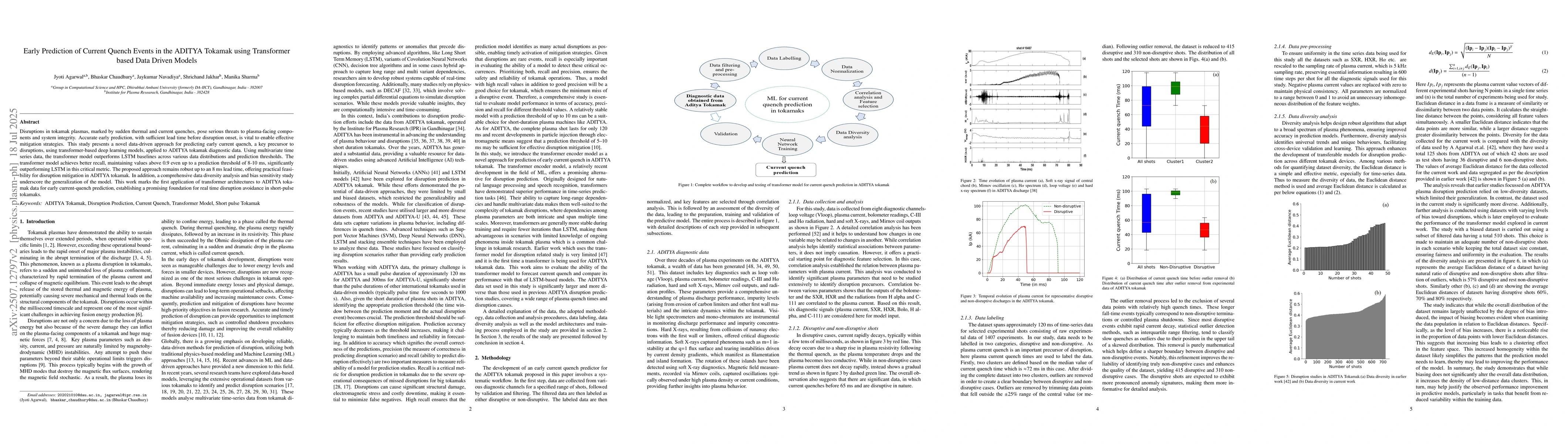 This research introduces a transformer-based deep learning model for early prediction of current quenches in ADITYA Tokamak plasmas, outperforming LSTM models in recall and demonstrating robustness up to 8 ms lead time, paving the way for real-time disruption avoidance in short-pulse tokamaks.