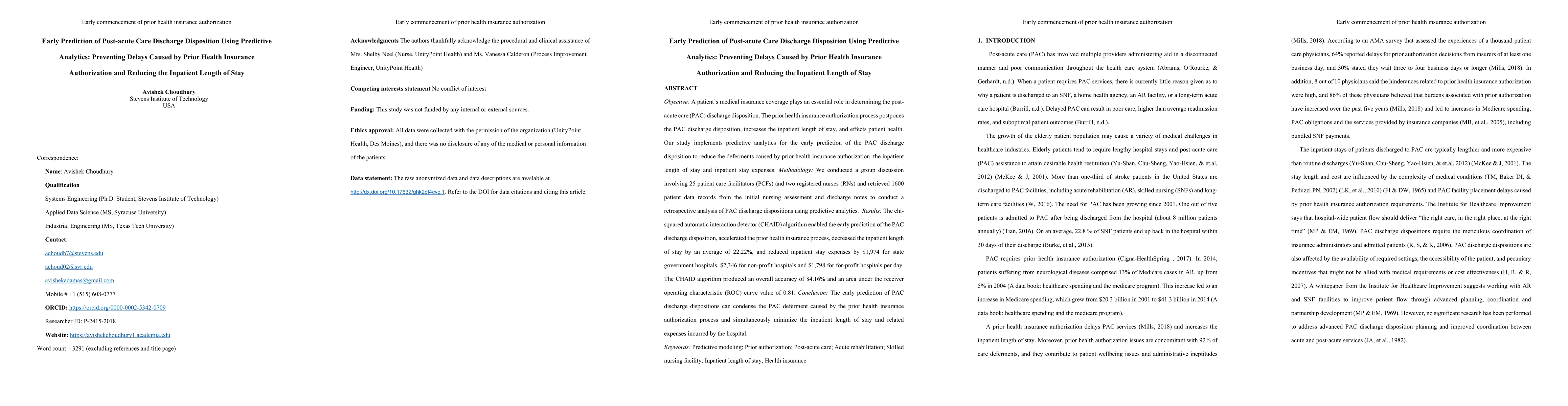 This study uses predictive analytics to early predict post-acute care discharge dispositions, reducing delays from prior health insurance authorizations and shortening inpatient stays by 22.22%. The CHAID algorithm achieved an 84.16% accuracy, lowering hospital costs by \$1,974, \$2,346, and \$1,798 per day for state, non-profit, and for-profit hospitals respectively.