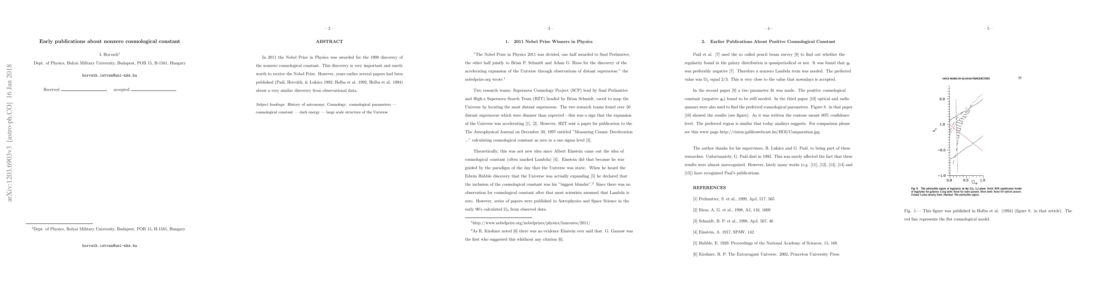In 2011 the Nobel Prize in Physics was awarded for the 1998 discovery of the nonzero cosmological constant. This discovery is very important and surely worth to receive the Nobel Prize. However, years earlier several papers had been published (Paal, Horvath, & Lukacs 1992; Holba et al. 1992, Holba et al. 1994) about a very similar discovery from observational data.