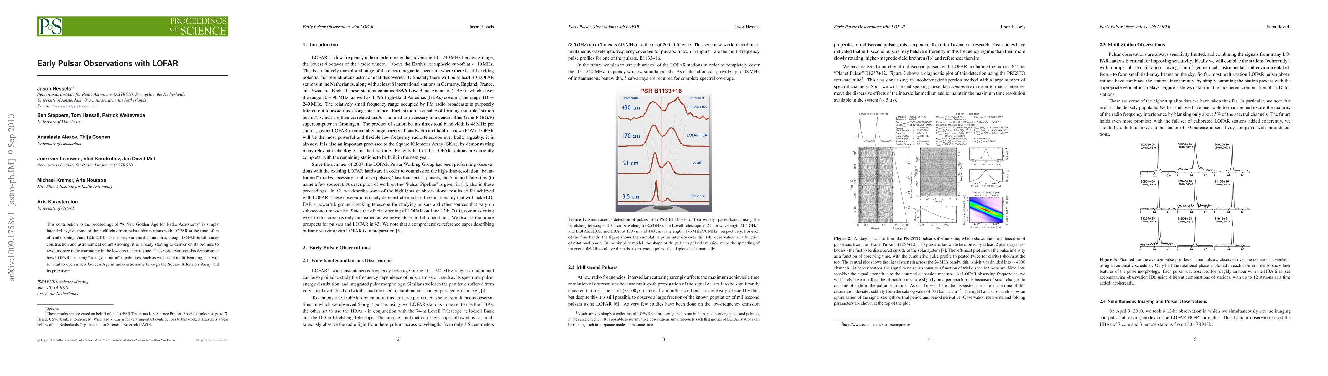 Summary: Early pulsar observations with LOFAR reveal its potential to revolutionize low-frequency radio astronomy, showcasing next-generation capabilities like wide-field multi-beaming even during its construction phase. These findings highlight LOFAR's role in ushering in a new era of radio astronomy.