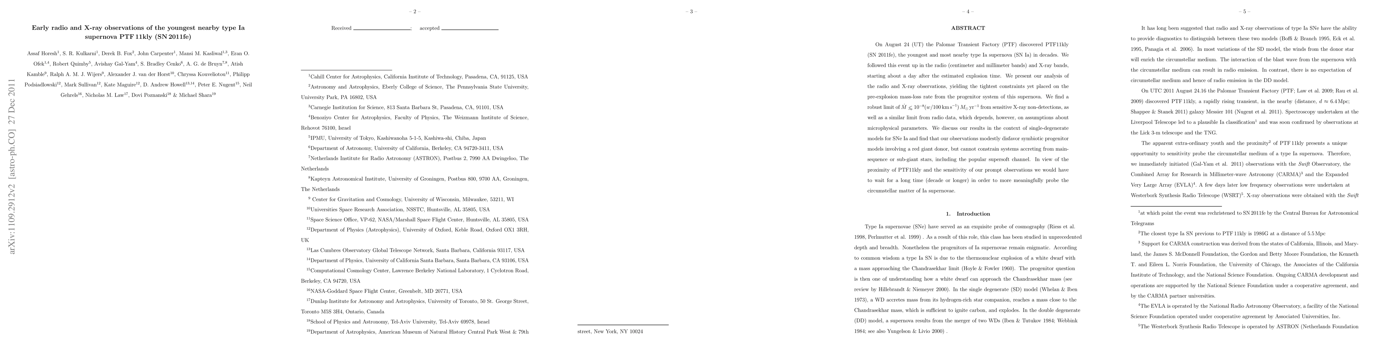 This paper reports on early radio and X-ray observations of the nearby type Ia supernova PTF11kly (SN 2011fe), providing tight constraints on the progenitor's mass-loss rate. The study finds limits on mass-loss rates from both X-ray and radio data, disfavoring symbiotic progenitor models but not constraining systems with main-sequence or sub-giant stars.