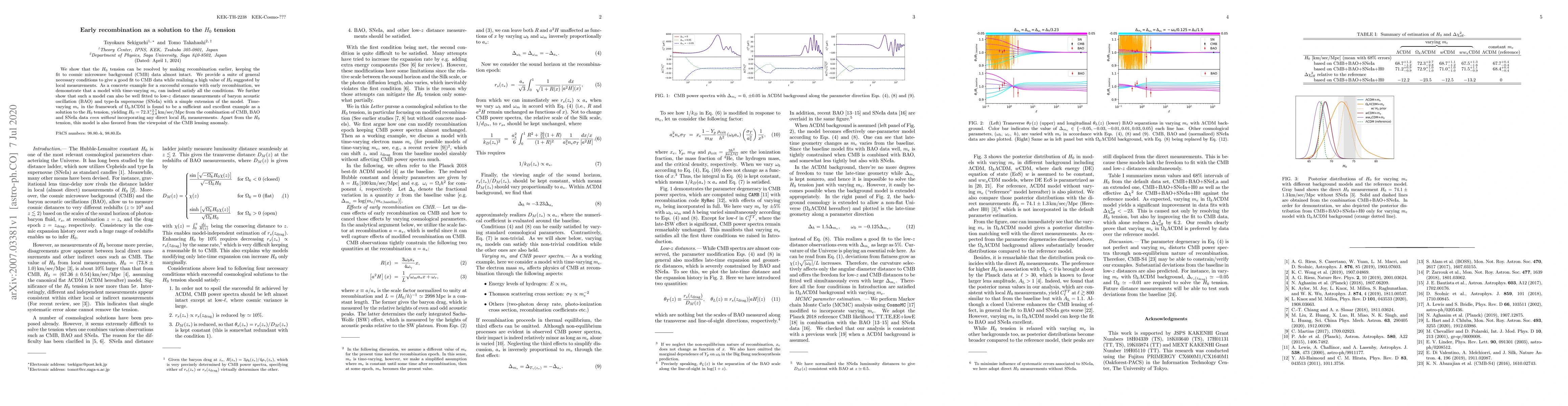 Researchers propose that making recombination earlier could resolve the $H_0$ tension in cosmology by allowing for a higher value of Hubble's constant, supported by data from cosmic microwave background, baryon acoustic oscillations, and type-Ia supernovae.