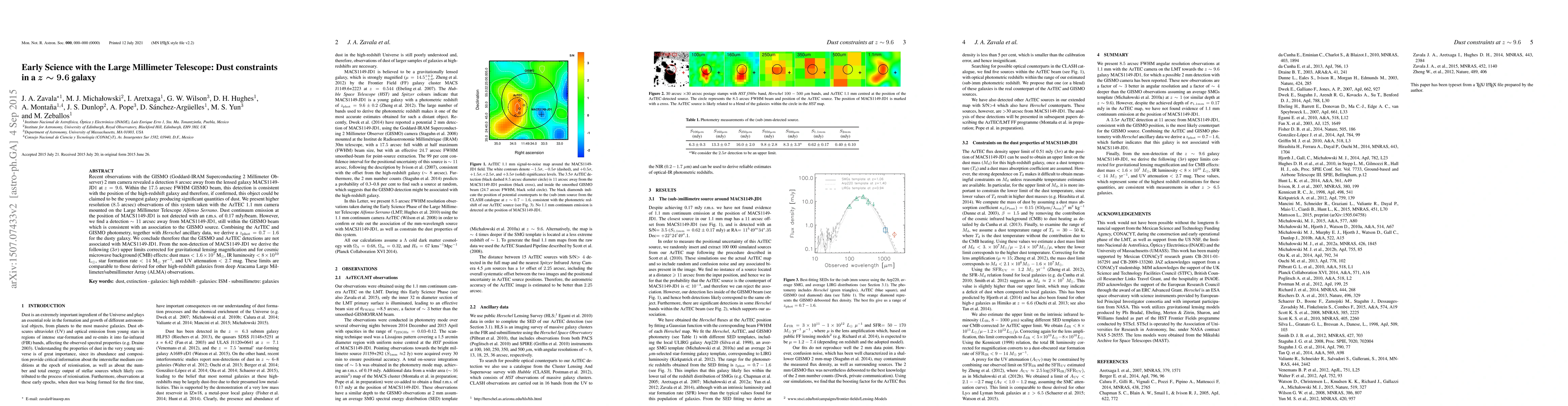 The Large Millimeter Telescope observed a potential dust detection near the z=9.6 galaxy MACS1149-JD1, but higher resolution data show no dust emission at the galaxy's position, suggesting the detection is unrelated. The study sets stringent upper limits on the galaxy's dust mass, IR luminosity, star formation rate, and UV attenuation.