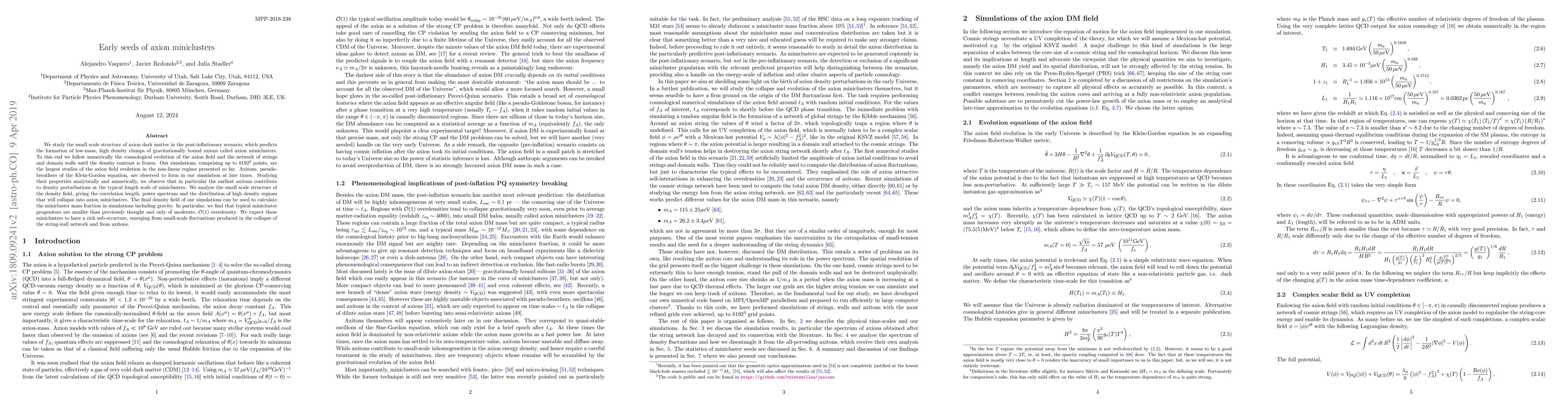 This research investigates the formation of axion miniclusters, low-mass, high-density clumps of gravitationally bound axions predicted in post-inflationary scenarios. The study uses large-scale numerical simulations to follow the evolution of the axion field and the network of cosmic strings and domain walls, finding that early axitons contribute to density perturbations leading to minicluster formation. The analysis reveals that minicluster progenitors are smaller and of moderate overdensity than previously thought, with expected rich substructure from small-scale fluctuations.