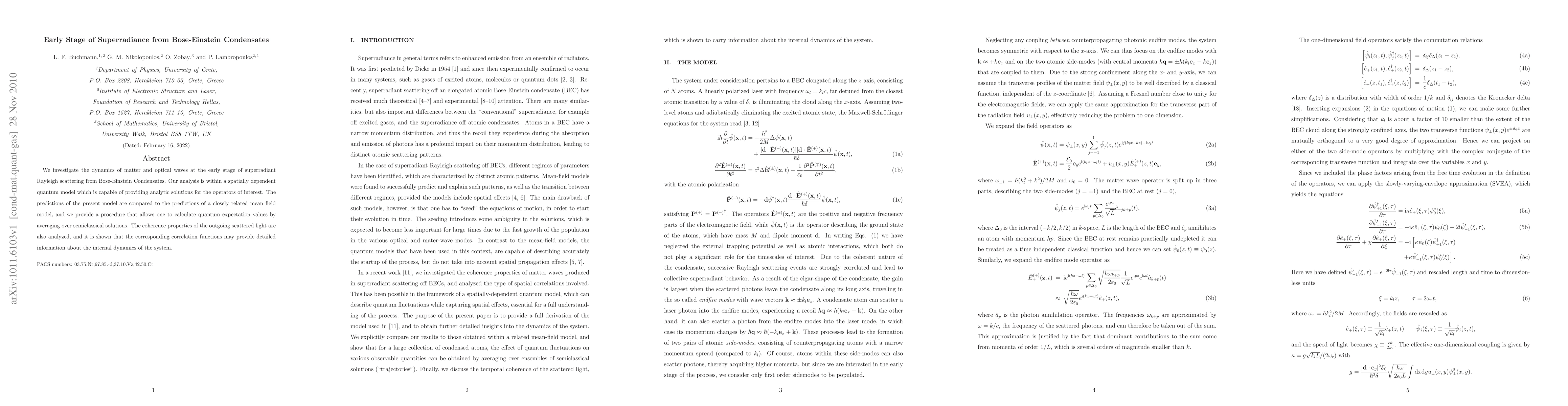 Researchers studied the early stages of superradiance in Bose-Einstein Condensates, finding that quantum models can predict coherent light properties and internal dynamics, offering insights into the system's behavior.