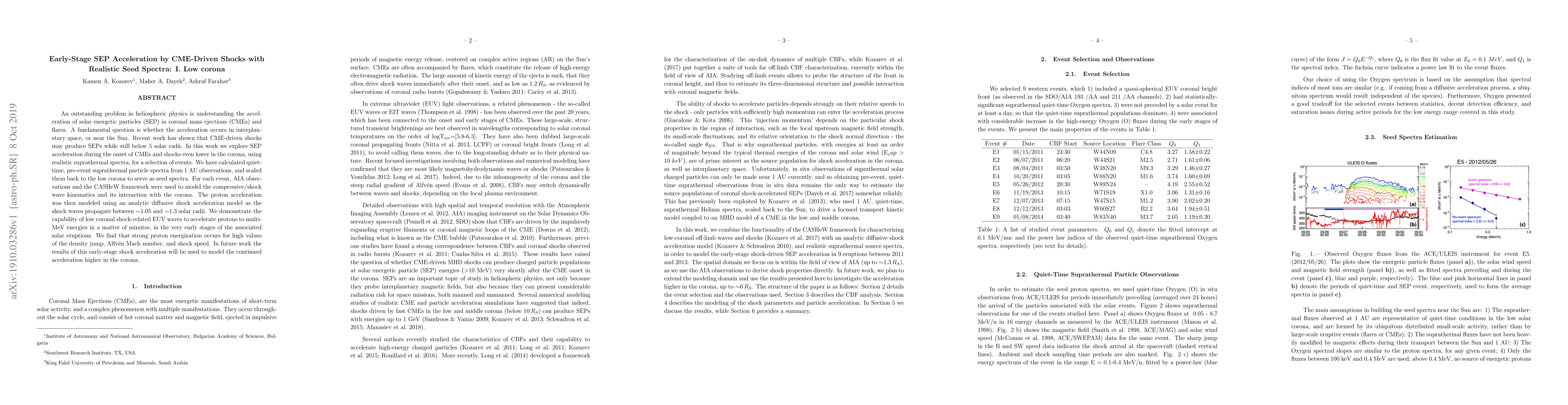 This paper investigates the early-stage acceleration of solar energetic particles (SEPs) by CME-driven shocks in the low corona, using realistic seed spectra. It demonstrates that low coronal shock waves can accelerate protons to multi-MeV energies within minutes, driven by high density jumps, Alfven Mach number, and shock speeds.