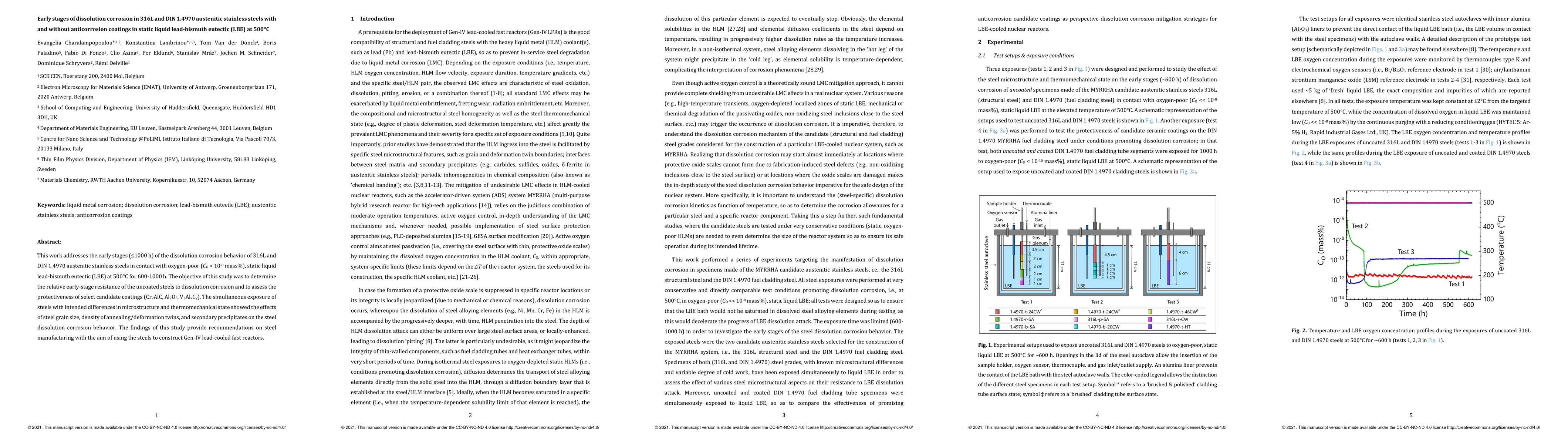 This study investigates the early stages of dissolution corrosion in 316L and DIN 1.4970 austenitic stainless steels in static liquid lead-bismuth eutectic at 500°C, focusing on corrosion resistance and the effectiveness of anticorrosion coatings. The results offer insights for optimizing steel manufacturing for Gen-IV lead-cooled fast reactors.
