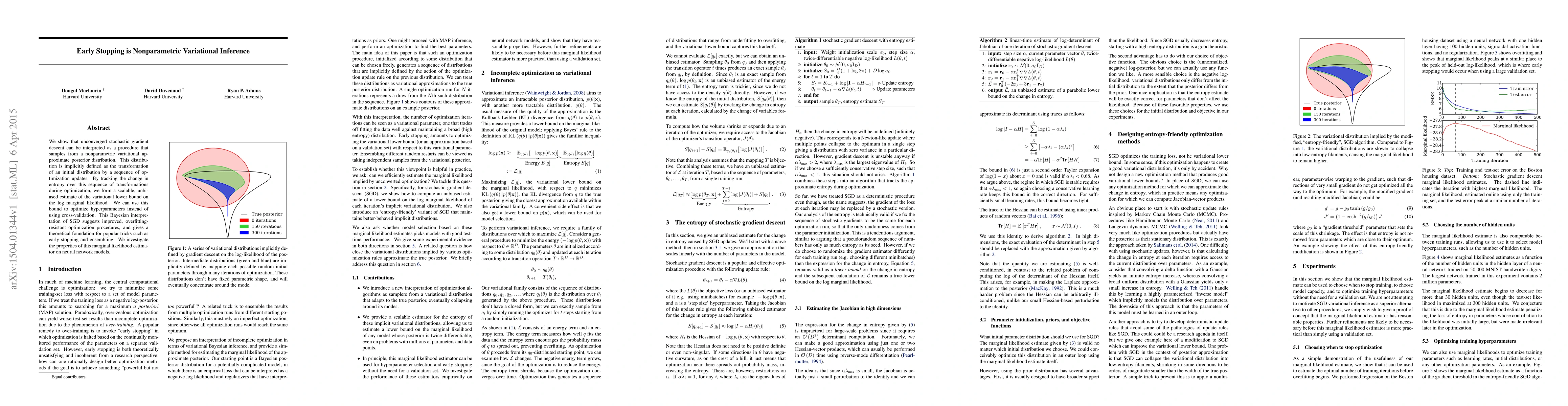 We show that unconverged stochastic gradient descent can be interpreted as a procedure that samples from a nonparametric variational approximate posterior distribution. This distribution is implicitly defined as the transformation of an initial distribution by a sequence of optimization updates. By tracking the change in entropy over this sequence of transformations during optimization, we form a scalable, unbiased estimate of the variational lower bound on the log marginal likelihood. We can use this bound to optimize hyperparameters instead of using cross-validation. This Bayesian interpretation of SGD suggests improved, overfitting-resistant optimization procedures, and gives a theoretical foundation for popular tricks such as early stopping and ensembling. We investigate the properties of this marginal likelihood estimator on neural network models.