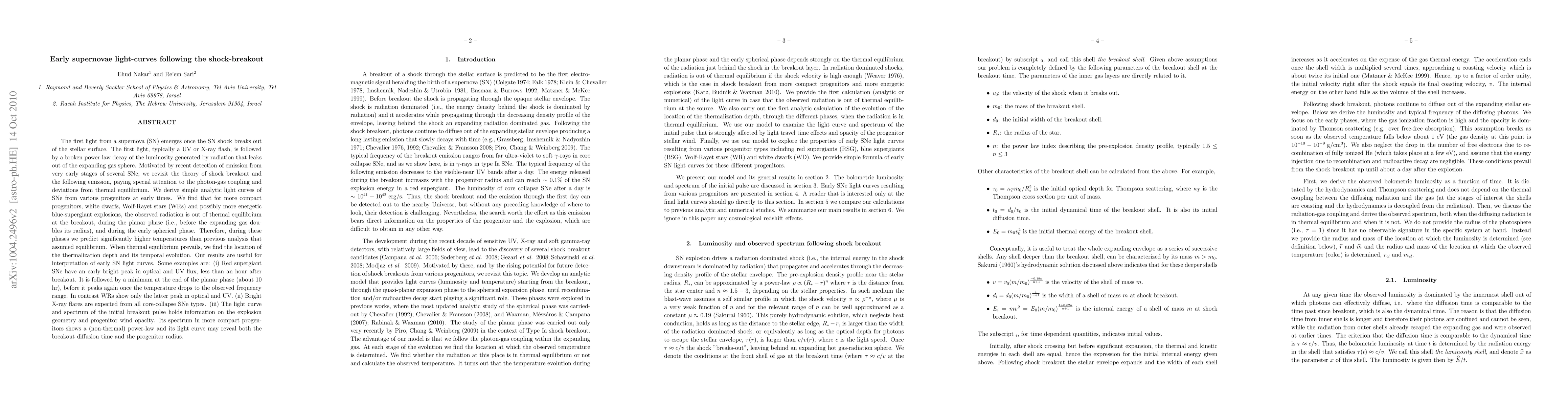 This paper explores the early light curves of supernovae following shock breakout, deriving analytic models that consider photon-gas coupling and deviations from thermal equilibrium. It predicts significantly higher temperatures for non-equilibrium phases in compact progenitors, providing insights into the early optical, UV, and X-ray emissions, and the geometry of the explosion.