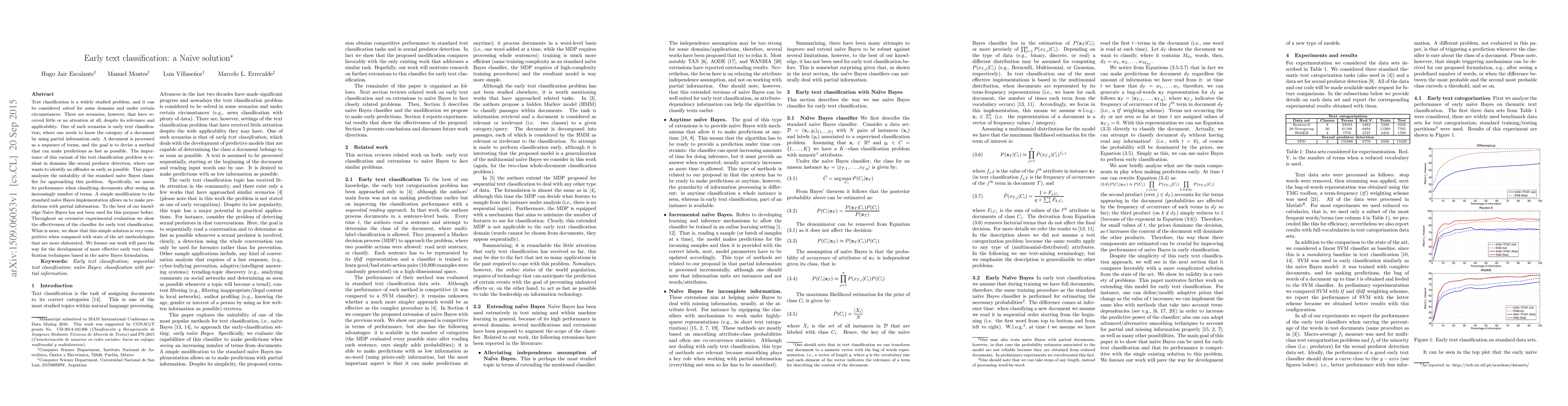 This paper explores the application of a modified naive Bayes classifier for early text classification, where predictions are made using partial information. The study demonstrates the classifier's effectiveness and competitiveness against more complex methods, suggesting it could inspire future advancements in the field.