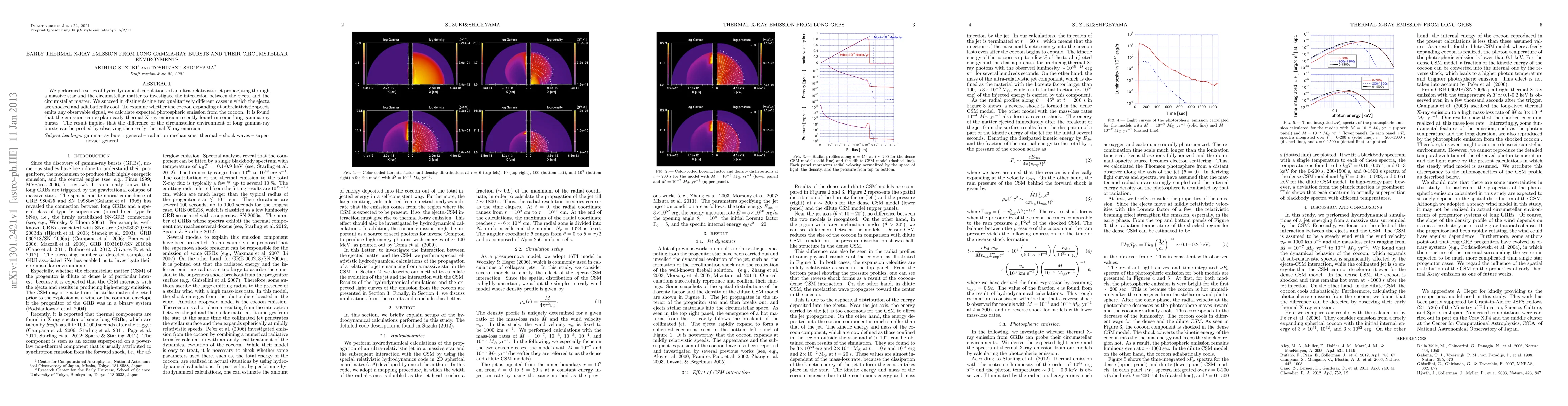 We performed a series of hydrodynamical calculations of an ultra-relativistic jet propagating through a massive star and the circumstellar matter to investigate the interaction between the ejecta and the circumstellar matter. We succeed in distinguishing two qualitatively different cases in which the ejecta are shocked and adiabatically cool. To examine whether the cocoon expanding at subrelativistic speeds emits any observable signal, we calculate expected photospheric emission from the cocoon. It is found that the emission can explain early thermal X-ray emission recently found in some long gamma-ray bursts. The result implies that the difference of the circumstellar environment of long gamma-ray bursts can be probed by observing their early thermal X-ray emission.
