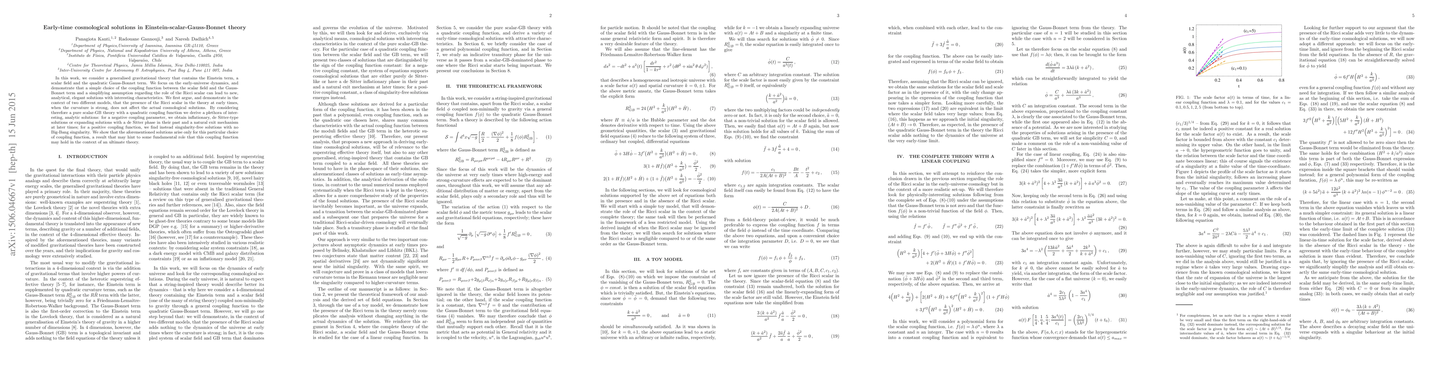 This research paper explores solutions to early-time cosmology in a modified gravity theory combining Einstein terms, scalar fields, and Gauss-Bonnet terms, revealing novel inflationary and singularity-free scenarios.