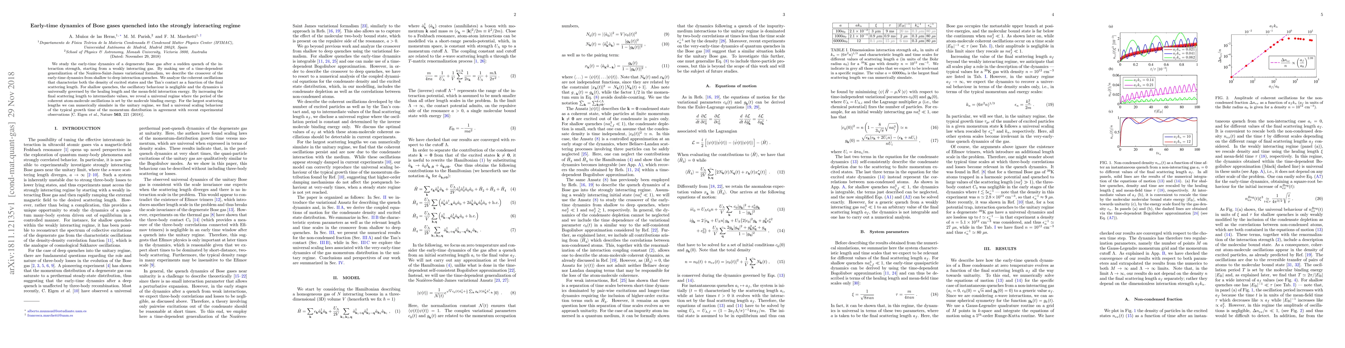 We study the early-time dynamics of a degenerate Bose gas after a sudden quench of the interaction strength, starting from a weakly interacting gas. By making use of a time-dependent generalization of the Nozi\`eres-Saint-James variational formalism, we describe the crossover of the early-time dynamics from shallow to deep interaction quenches. We analyze the coherent oscillations that characterize both the density of excited states and the Tan's contact as a function of the final scattering length. For shallow quenches, the oscillatory behaviour is negligible and the dynamics is universally governed by the healing length and the mean-field interaction energy. By increasing the final scattering length to intermediate values, we reveal a universal regime where the period of the coherent atom-molecule oscillations is set by the molecule binding energy. For the largest scattering lengths we can numerically simulate in the unitary regime, we find a universal scaling behaviour of the typical growth time of the momentum distribution in agreement with recent experimental observations [C. Eigen et al., Nature 563, 221 (2018)].