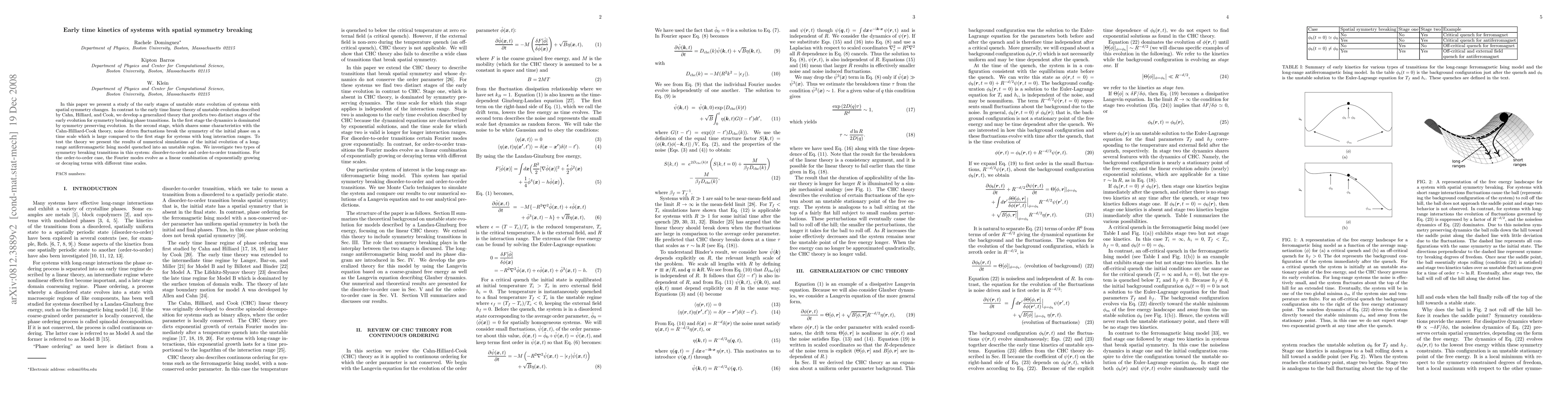 This paper develops a generalized theory for the early evolution of systems undergoing spatial symmetry breaking, identifying two distinct stages: an initial symmetry-preserving phase followed by noise-driven symmetry breaking, contrasting with the linear theory of Cahn, Hilliard, and Cook. Numerical simulations of a long-range antiferromagnetic Ising model support the theory, revealing different Fourier mode evolution patterns for disorder-to-order and order-to-order transitions.